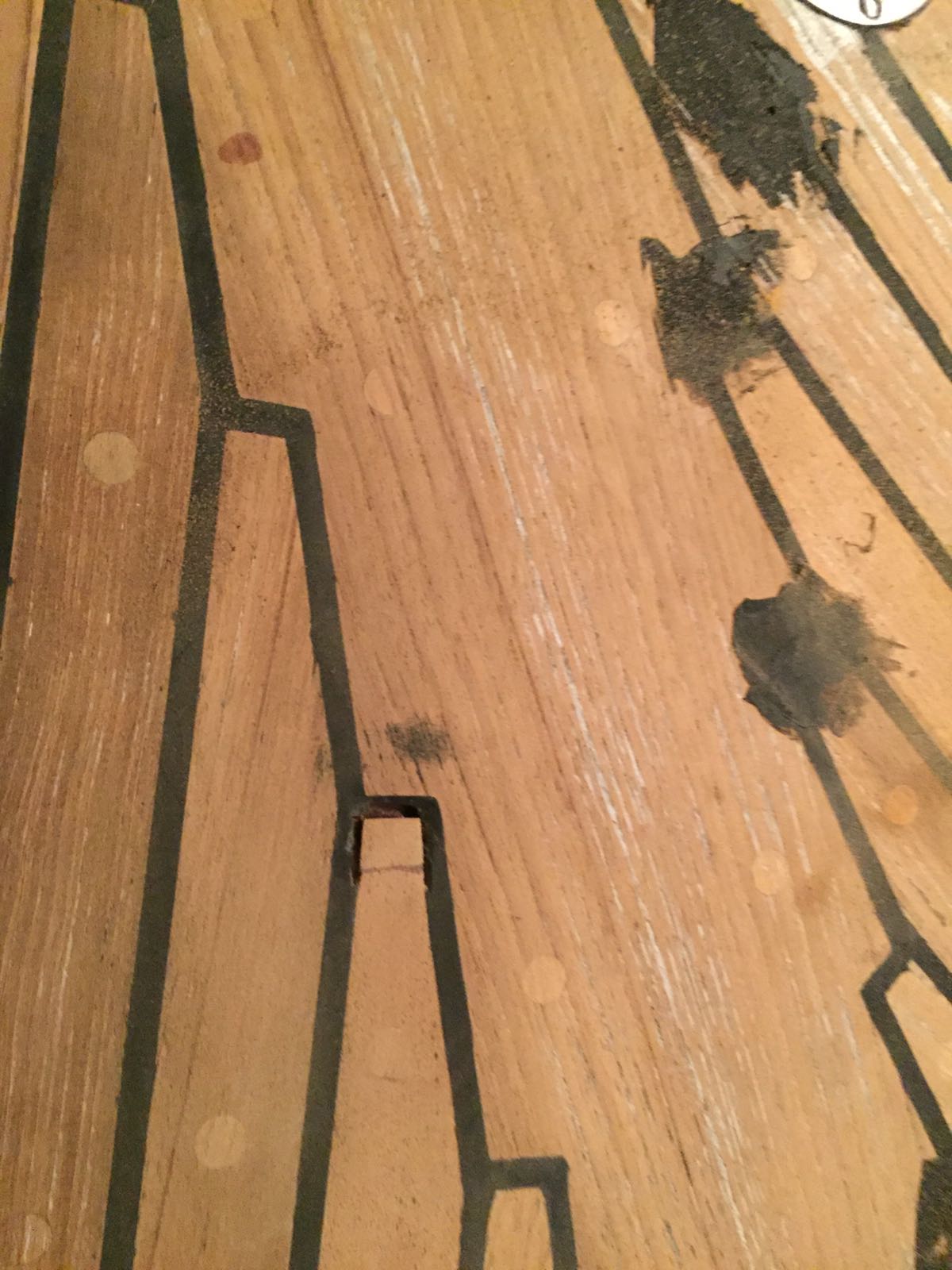IMG_0344 Veröffentlicht 31. März 2017 in 1200 × 1600 in Mein Winterprojekt: Das neue Teakdeck ← Vorherige Nächste → Auch unvollständig gefüllte Fugen können noch nachgearbeitet werden.