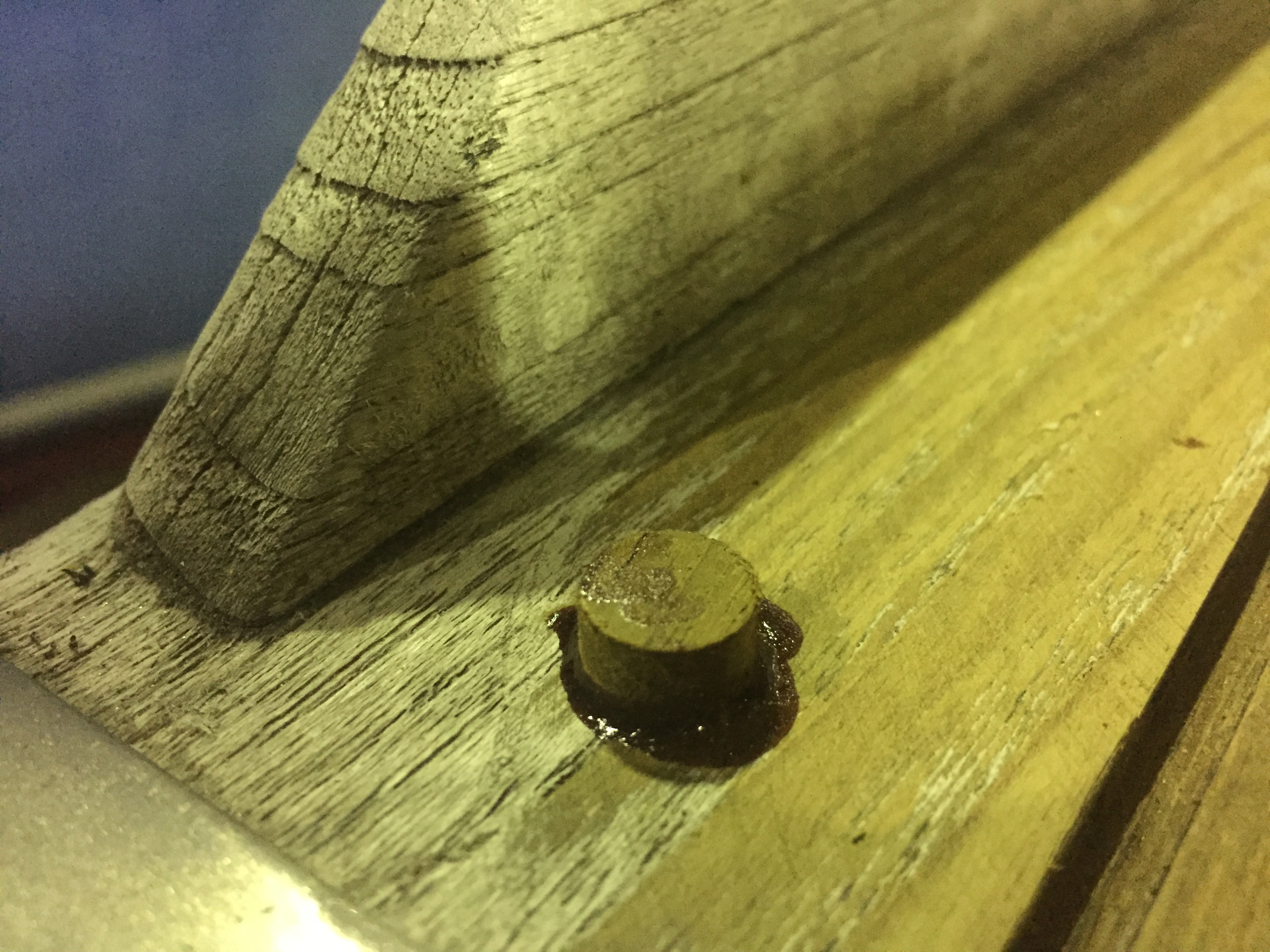 IMG_9209 Veröffentlicht 31. März 2017 in 3264 × 2448 in Mein Winterprojekt: Das neue Teakdeck ← Vorherige Nächste → Propfen neu setzen ist kein Hexenwerk. Schraube raus, tieferbohren, neuen Propfen mit passendem Kleber einsetzen.
