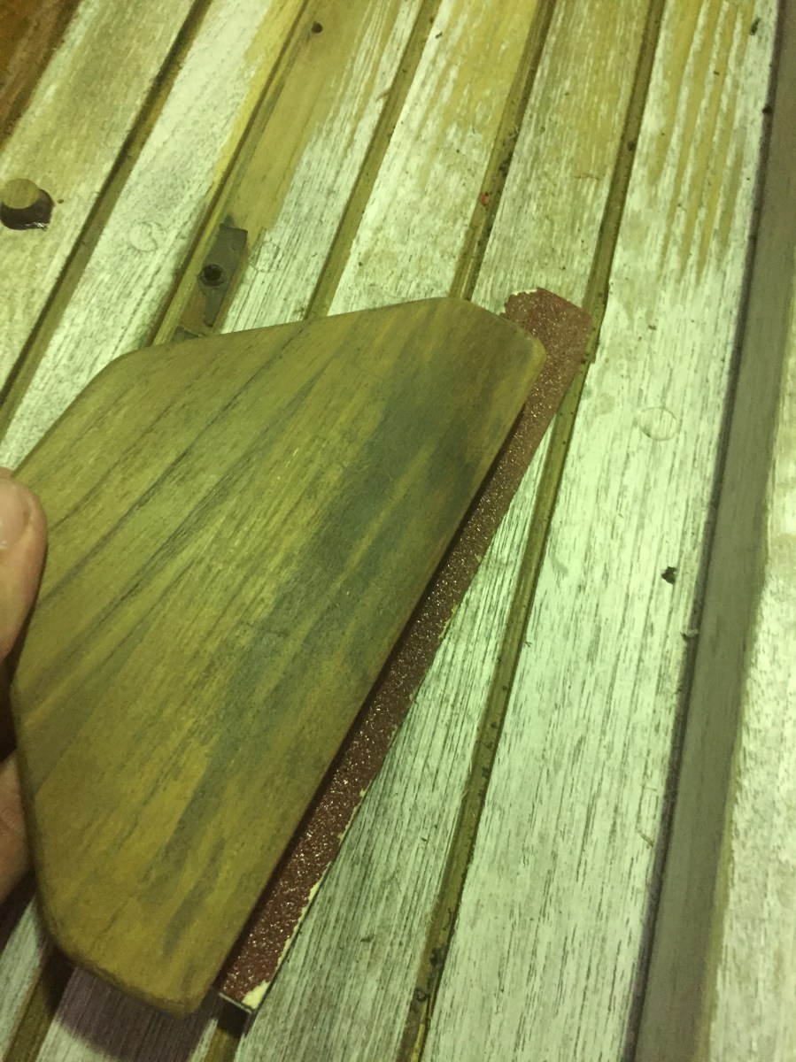 IMG_9319 Veröffentlicht 31. März 2017 in 2448 × 3264 in Mein Winterprojekt: Das neue Teakdeck ← Vorherige Nächste → Als nächstes werden die Flanken der Fugen für gute Haftung angeschliffen. Dafür eignet sich ein spezieller Schleifklotz am Besten.