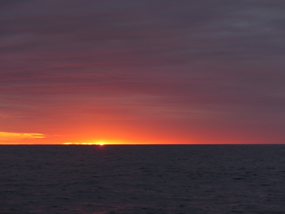 P1120898 Veröffentlicht 15. Juli 2017 in 4000 × 3000 in Ein weiteres Opfer und zwei Glücksfälle ← Vorherige Nächste → Jeder Sonnenaufgang auf See sieht anders aus. Dieser war uns nach der anstrengenden Nacht besonders wertvoll.