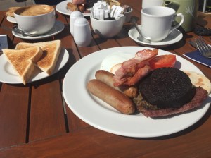 So bleiben neben dem netten Ort vor allem zwei bleibende Eindrücke aus Lossiemouth. Da wäre als erstes das echt leckere schottische Frühstück. Ich finde es wirklich bemerkenswert, dass man hier in den entlegensten Winkeln bisher bei jedem Restaurantbesuch richtig zufrieden war. Das hat man daheim selbst in zivilisierteren Gegenden so oft nicht. Das ganze dann auch noch zu wirklich anständigen Preise. Das Essen in den Pubs würde ich bei Hauptgerichten um die 12 GBP sogar als wirklich günstig bezeichnen.