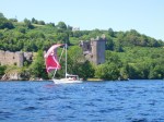 Irgendwann kommt das ehemals mächtige Urquhart Castle in Sicht. Ein mittelalterliches Schloss und DIE Attraktion in Loch Ness. Von Nessie natürlich mal abgesehen. Der Steg direkt davor ist leider für die Ausflugsschiffe reserviert, doch daneben steigt der Grund offenbar steil an. Perfekt um vor Heckanker zu gehen. Dafür gibts dann gleich bewundernde Blicke vom Aufseher, das Konzept hat er nämlich noch nicht gesehen, ist aber völlig einverstanden damit. Die Erkundung des Schlosses kann also losgehen. Und zwar schnell, denn in Invergordon liegen laut seiner Aussage die Disney Magic, Mein Schiff (in unnachahmlicher schottischer Aussprache „MiinSkiff“), und Aida. Wenn die hier aufschlagen wird man das Ganze eher nicht mehr genießen können. Schon Sultan Saladin im 11. Jhd. hatte mit uns Seglern nämlich eins gemeinsam: Die Angst vor aufschlagenden Kreuzfahrern. 😉