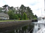 Im fünften Stock angekommen halte ich auch nur für ein kleines Mittagspause am oberen Steg und dann gehts weiter. Noch ohne zu wissen, dass nun das schönste Stück Kanal vor mir liegen würde. Die Landschaft wird lieblicher und bewaldetet. Am linken Ufer scheucht doch tatsächlich ein Golfer eine Schafherde mit wilden Schwüngen seines Schlägers davon. Schottland wie es leibt und lebt. 😉 Die nächste Schleuse, Kytra, ist dann auf einmal so ganz anders als alle anderen bisher. Die Schleusenwärterin ist eine nette ältere Dame, alles ist mit Blüchen bepflanzt und das alte Büro sieht aus wie aus Disneyland. Endlich kam so richtig entspannte Urlaubsstimmung auf, und der schönste Teil des Caledonian Canal sollte vor mir liegen…