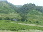 Doch etwas anderes ist noch viel spektakulärer: die Fahrt durch die schottischen Highlands. Auf dem Caledonian Canal habe ich ja bereits einen Eindruck davon bekommen, doch das hier schlägt wirklich alles. Die Bahnstrecke windet sich an den Bergen entlang, durch menschenleere Moore und Hänge, an Burgruinen, Lochs und kleinen Ortschaften vorbei. Zwei Stunden dauert die Fahrt und selbst danach hat man sich noch nicht satt gesehen. Bis in das frühe 18. Jhd. hinein sollen Nachrichten aus diesem Teil des Empires nach London länger gebraucht haben als aus Afghanistan. Irgendwie zwar schwer vorstellbar, doch beim Anblick dieser Landschaft wirkt es auf einmal plausibel. Ich erkenne auch, dass dieser Teil Schottlands tatsächlich etwas mystisches in sich trägt. Die Landschaft ist nicht einfach nur schön anzuschauen sondern scheint von Zeit zu Zeit tatsächlich nicht wie von dieser Welt. Karge Steppen, Felswände und sattgrüne Hänge wechseln sich fast im Sekundentakt ab. Und fast immer in den unwegsamsten Gegenden stehen auf einmal die Reste eines kleinen Hauses. Kein Wunder das die alten Schotten keinen Bock auf Könige hatten sondern einfach nur ihre Ruhe haben wollten.