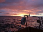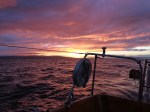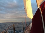 Bevor die Nacht über mich und Nonsuch hereinbrach kam erst einmal ein absolut irrer Sonnenuntergang. Davon gibts ja nun wirklich viele, auch und gerade bei Segelbildern, aber dieser hier war wirklich etwas besonderes. Die Sonne versank hinter dem Mull of Kintyre und den Wolken, die auf seiner Westseite darauf warteten vom Atlantik über die bergige Halbinsel Richtung Westen zu ziehen. Dabei bekam das Meer eine richtig goldene Farbe und die Wolken ganze tausend verschiedene Farben verpasst. Selbst wenn man schon hunderte Sonneuntergänge zuvor gesehen hat, war das ein einmaliges Spektakel. Zu meinem Abschied aus Schottland verstand ich noch einmal warum die Kelten diesem Landstrich solch eine geheimnisvolle Kultur hinterlassen haben.
