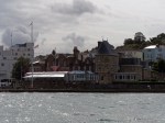 Die Szenerie hört aber nicht hinter dem Hafen auf. Am River Medina reiht sich eine Yachtwerft an die nächste. Doch das wirklich besondere ist wohl der kleine Ort Cowes selbst. Gefühlt jeder zweite läuft hier nämlich mit Segelklamotten rum. Ich habe noch nie so viele lederne Seestiefel in einer Stadt auf einem Haufen gesehen. Dazu gibt es gefühlt alle 150m einen Chandler oder Yachtclub. Noch nie habe ich einen Ort gesehen, dessen ganze Identität nur aus Segeln zu bestehen scheint. Wobei das echte Highlight erst ganz am Ende der High Street kommt: Die Royal Yacht Squadron selbst, mit ihrem erhabenen privaten Clubhaus und den polierten Startkanonen mit Blick auf den Solent. Hier ist Segeln.