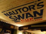 Am Abend bevor Papa mich verlässt haben wir natürlich noch ein Abschiedsdinner im Pub. Und selbst im Pub scheint die ganze Deko aus Regattadevotionalien der letzten Jahrzehnte zu bestehen. Gab es bisher zwar in den Häfen oft auch Seemannspubs die mit allerlei maritimem wie Knotenbrettern, alten Positionslampen und solchem Kram dekoriert waren, ist das hier ein echter Seglerpub. An den Wänden hängen Plakate von Regatten in aller Welt, Yacht-Halbmodelle und Bilder der siegreichen Boote der letzten Jahre. Cowes lebt Segeln.