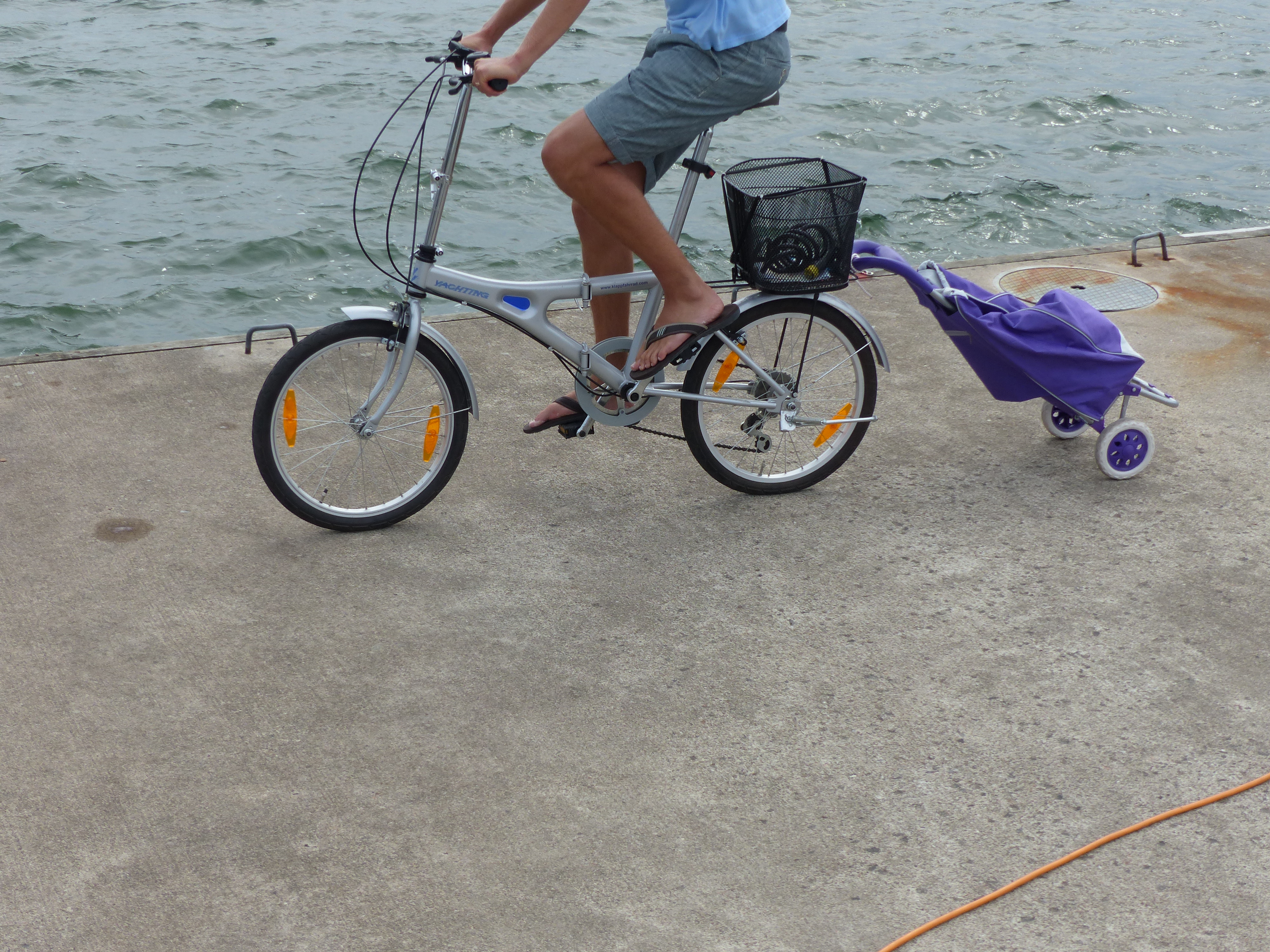 P1010800 Veröffentlicht am 29. Juli 2014 in 4000 × 3000 Neuester Shoppingtrend. Lila Hackenporsche mit Rentnerbike.